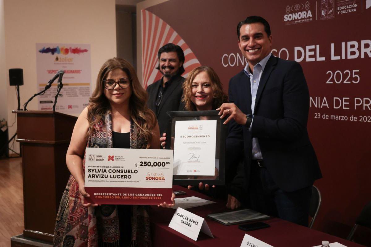 Hermosillo, Sonora; 23 de marzo de 2026.- El Gobierno de Sonora, a través de la Secretaría de Educación y Cultura (@SegobSonora ) y el Instituto Sonorense de Cultura (@ISCsonora), llevó a cabo la ceremonia de premiación del Concurso del Libro Sonorense (CLS) 2025 en la Casa de la Cultura de Sonora, certamen con más de 80 años de trayectoria que impulsa la creación literaria en la entidad.